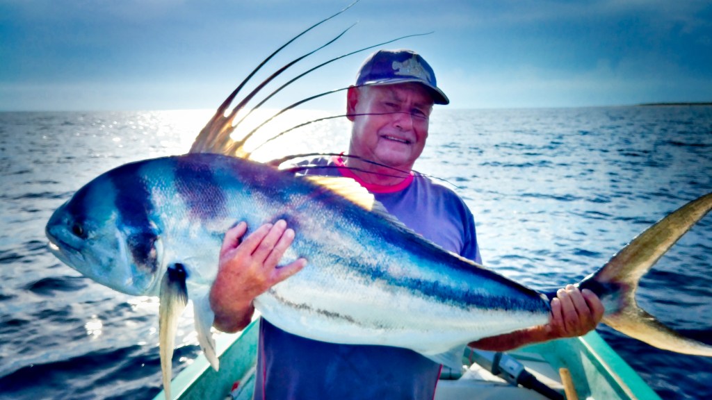He’ll tell you to drop your line. “Eso. Aqui, Senor.” Here’s the spot to fish!
